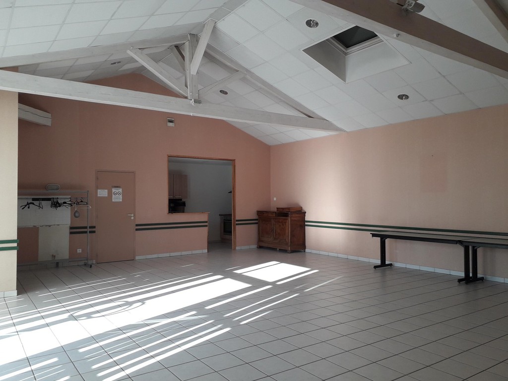 120 personnes maxi. Cuisine équipée, réfrigérateur industriel, four, plaque de chauffe et cuisson, lave vaisselle. Vaisselle, tables et chaises. Grande salle 236 m², pouvant être séparée en deux, avec bar.